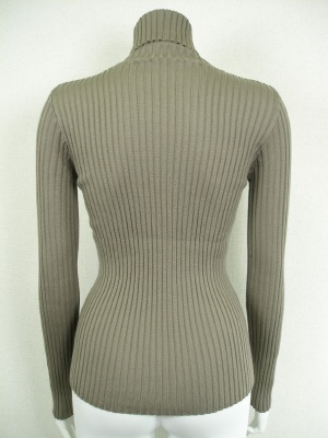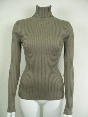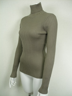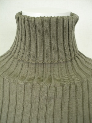 ベージックなリブタートルニット。手洗いしても縮みにくく、毛玉ができにくいトリートメント加工を施してあります。