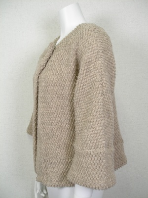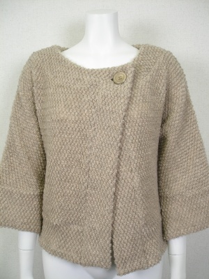 ポコポコした素材が可愛いボレロ。Aラインとワイドスリーブでゆったり目の着心地。