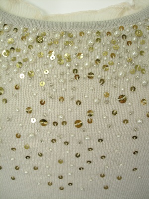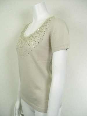 ビーズとスパンコールを散りばめた上品なニット。アンサンブルになるカーディガンもございます。