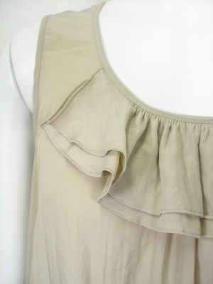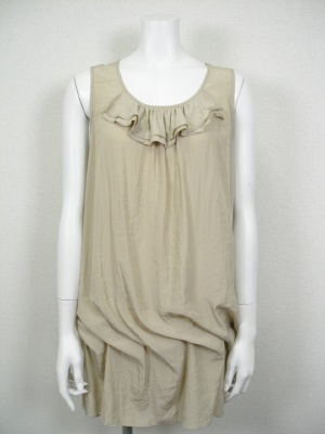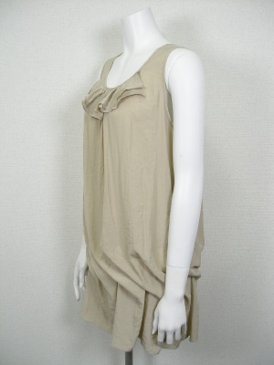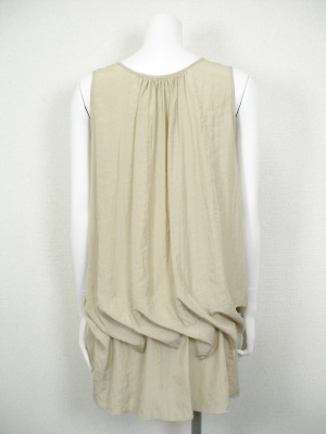 ローウエストでブラウジングされているようなデザイン。裏側のボタンを外すとストンと落ちるAラインに変わります。