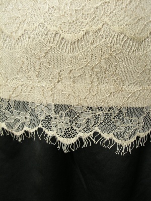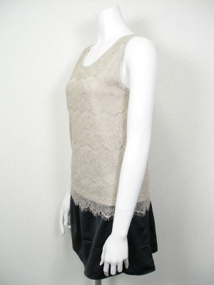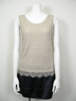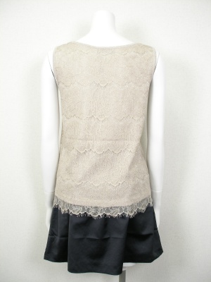 ラメニットにレースを重ねたトップスと、別素材のスカートの2点セット。合わせるとワンピースのようです。スカートは裏地付き。