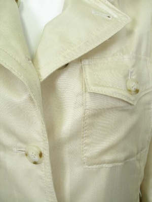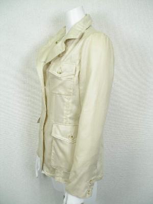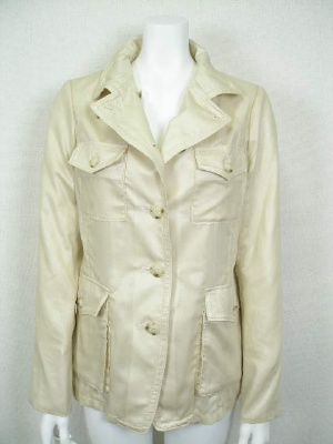 光沢と透け感のある、サファリジャケット。カジュアルですが、大人っぽく着こなせます。