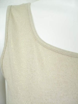 細かい箔プリントでキラキラしたタンクトップ。プリントは表面のみです。着丈が長めのタイプもございます。