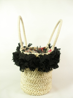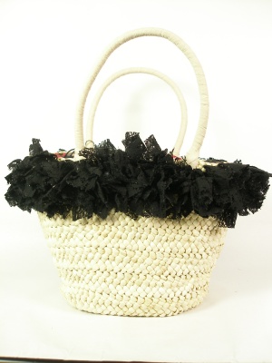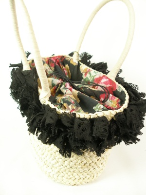 たっぷりのナチュラルレースで飾ったフェミニンなカゴバッグ。