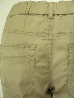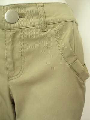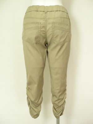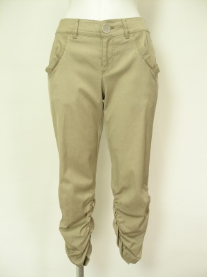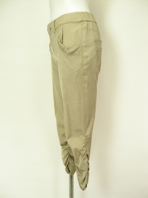 ポケットのデザインが可愛い、ストレッチの効いたギャザーパンツ。
