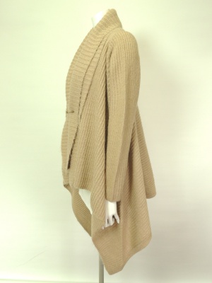 サイドが長いデザインのざっくりしたニットカーディガン。