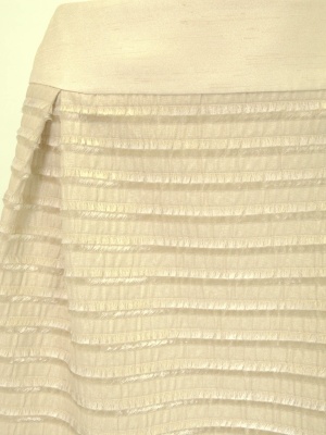 ウエストと裾はシャンタン風で、ボーダー部分は細かいフリンジで表現した生地です。