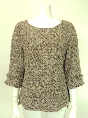 ストンとしたシルエットのツイードのトップス。