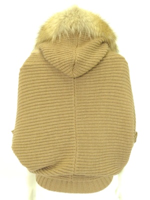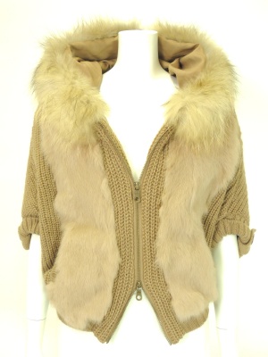 フードの毛足の長いファーはタヌキで、前身頃の滑らかなファーはラビットです。