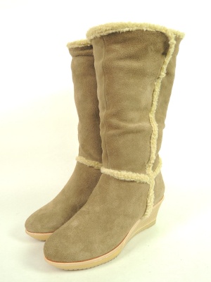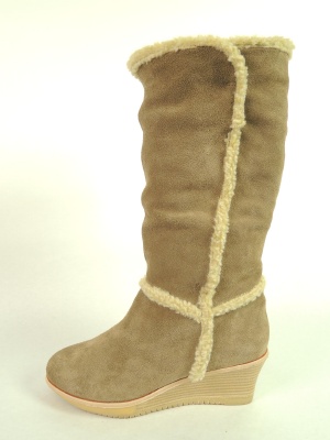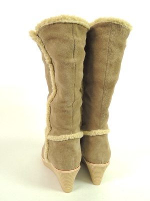 ボアでアクセントを付けたスウェードのミドルブーツ。