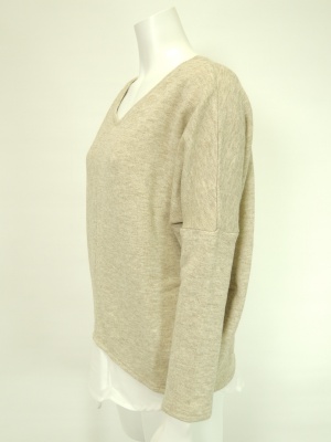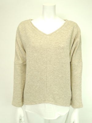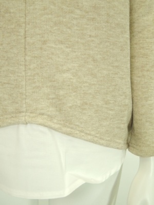 裾からシャツをのぞかせたようなデザイン。スウェット生地でドルマンスリーブです。