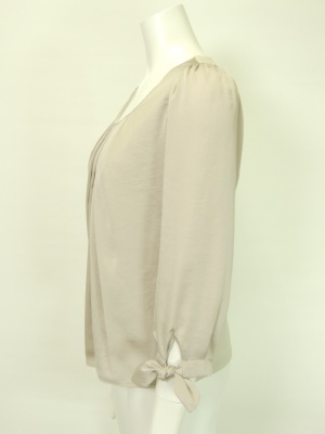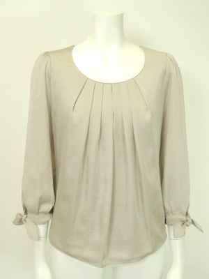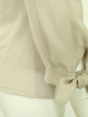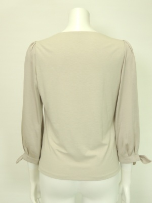 前身頃とお袖は光沢素材で、後ろ身頃はストレッチカットソー。