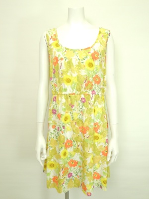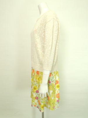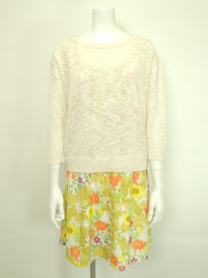 花柄ワンピースにゆるニットを重ね着しています。(2点セット)