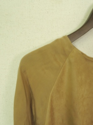 フェイクスエードと後ろ身頃はキュプラ地 後ろの裾はバルーン仕立て