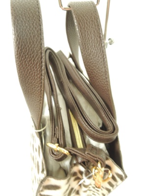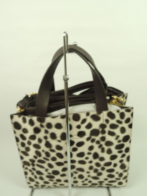 柄違い、真ん中の仕切り部分がファスナーになっている、ショルダーは取り外し可能