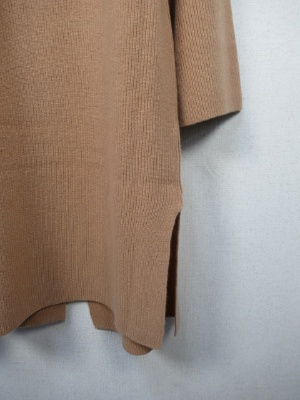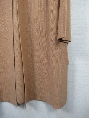 リブ編みのボタンなしの着流しカーディガン、横スリット
