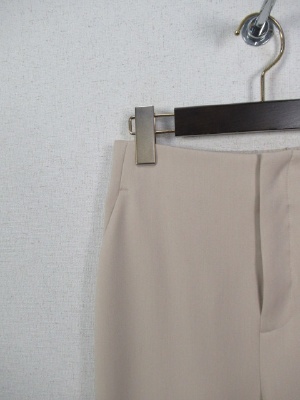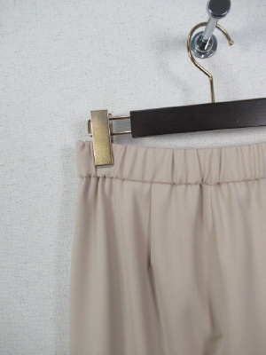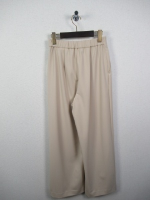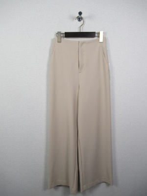 ハイウェストのワイドパンツ、前ファスナー、ウェスト後ろゴム、脇ポケット