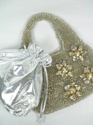 大きなビジューつきキラキラバッグ。中の巾着は取り外せます。