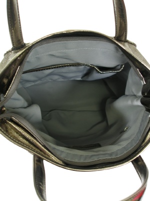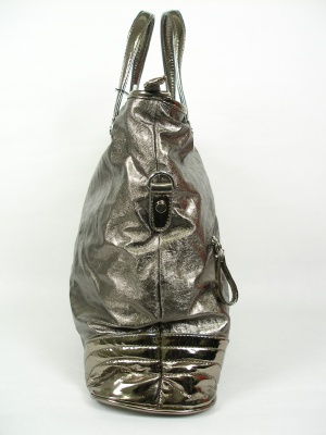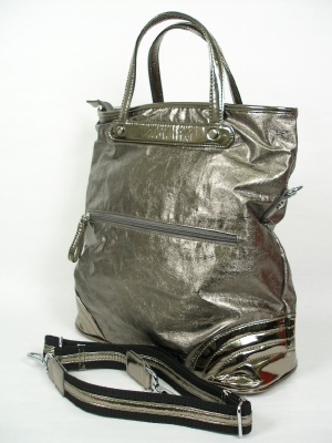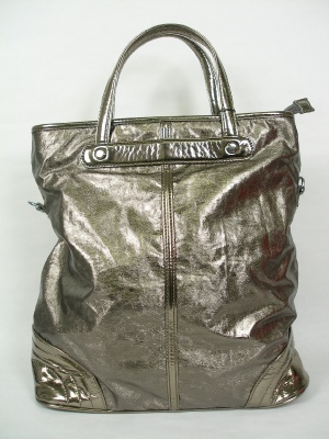 シャイニーな縦長バッグ。A4サイズがラクラク入る大きさです。斜め掛けできるストラップ付き。