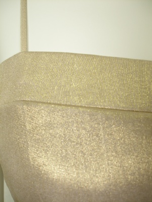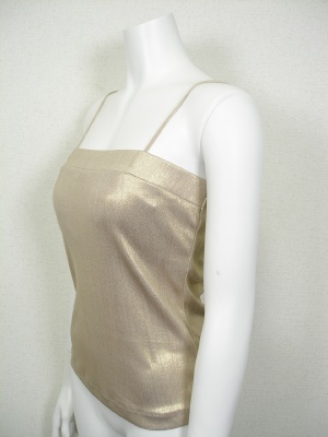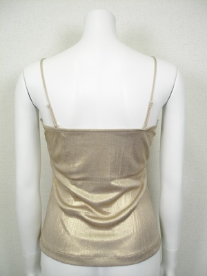 ラメプリントのキャミソール。幅広ゴムで胸元にフィットします。ストラップを外したらベアトップに。