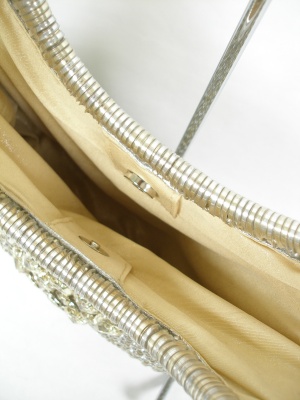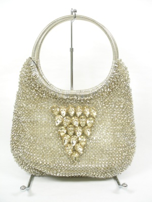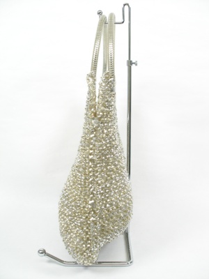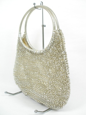 アクセサリー感覚で持ちたい、キラキラした小さめバッグ。荷物を入れるとコロンとしたシルエットになります。サイズの「高さ」はハンドルを含みます。