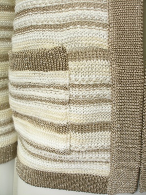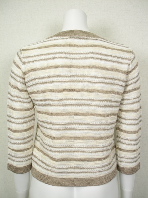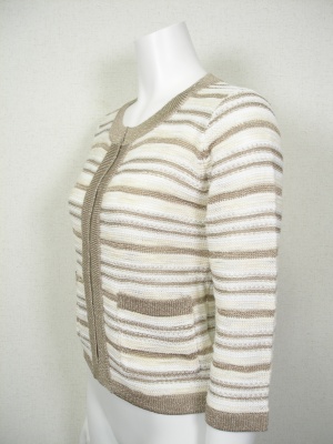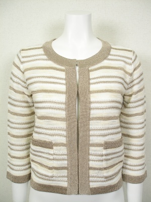 ジャケットのようなニットカーディガン。白にラメボーダー。裏地なし。