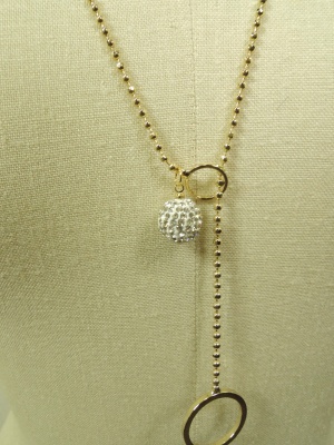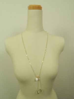 小さい輪の中に長いチェーンが通って津Y字ネックレス