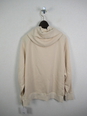 プルオーバーのパーカ 裏毛素材 脇スリットで前上がり ドロップショルダー ロゴ入り 手洗い可能