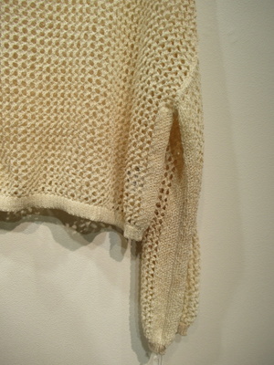 ※春物新作 カギ編み 長袖 ドロップショルダー クルーネック 裾は短め 手洗い可能