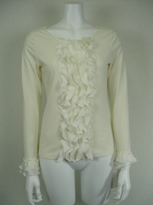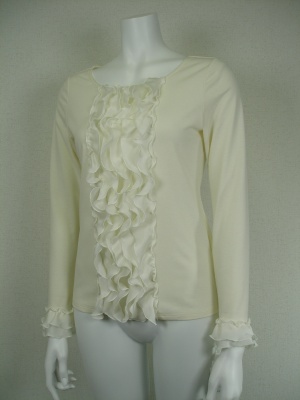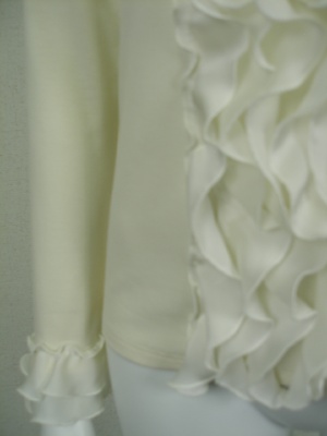 大きなフリルがとてもオシャレ。 ボタンなしで被りになります。