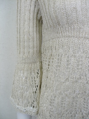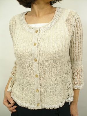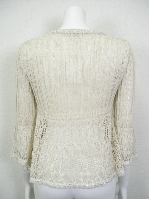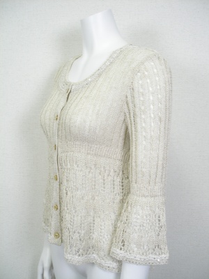 レーシーなカーディガン。程よいゆとりがありますが、コンパクトにまとまるのでワンピースに合わせてもバランス良い。