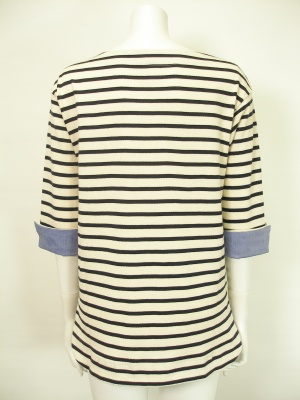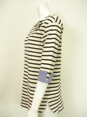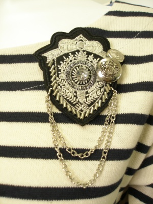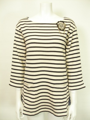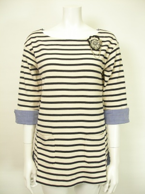 エンブレムブローチ付きボーダーカットソー。