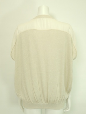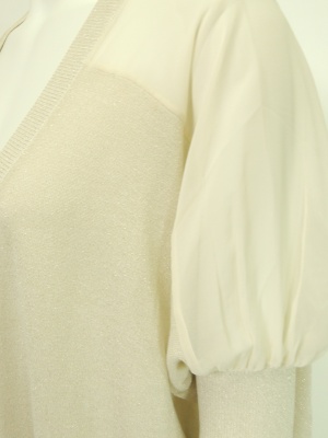肩から袖にかけてシフォンに切り替えたドルマンカーディガン。