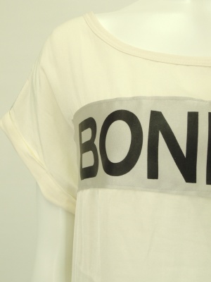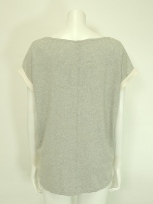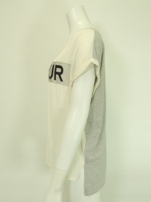 前身頃とロゴ部分はポリエステルで、後ろ身頃は綿のカットソーです。