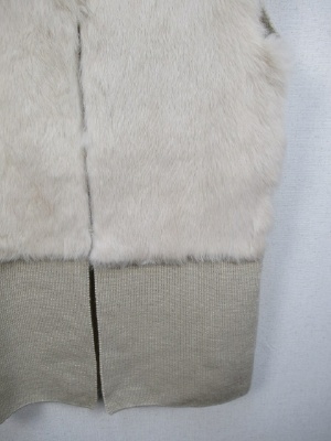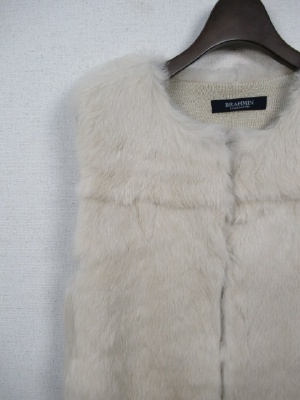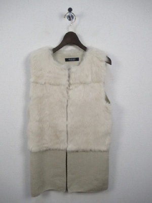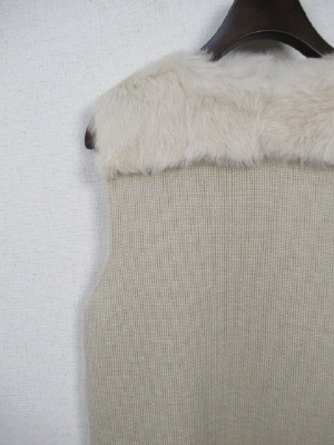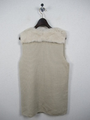 ラビットファーをニットに付けたやや長めの丈のベスト フロント鍵ホック