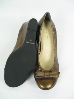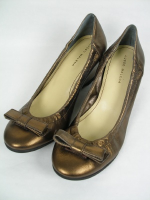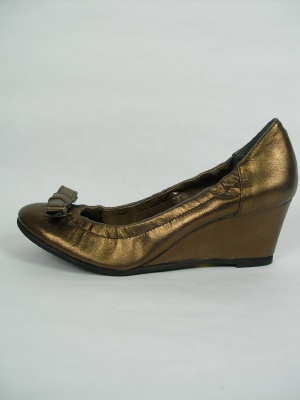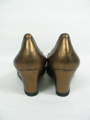 ウェッジソールでとても履きやすいパンプス。エナメル靴はカラータイツによく合います。