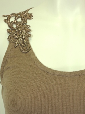 ラメ入りレースがポイントのタンクトップ。
