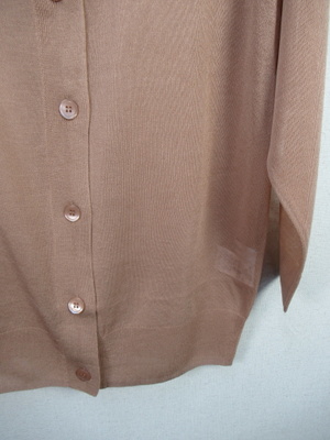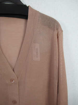 やや丈長カーディガン、前ボタン、透け感のある生地、手洗い可能
