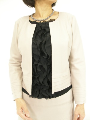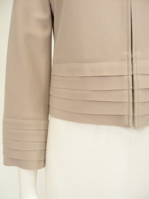 袖口と裾が5段になったノーカラージャケット。