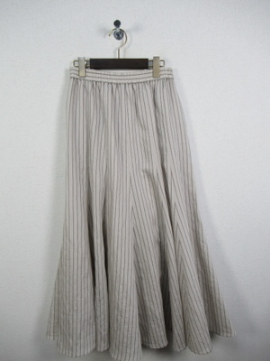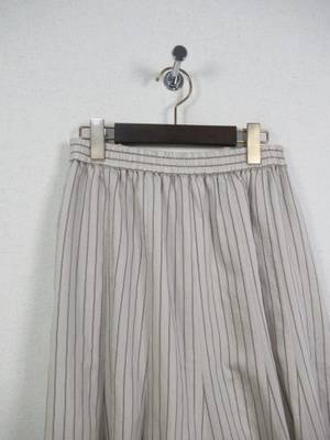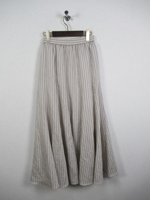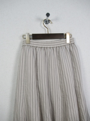 裾の方に生地分量が多くなるフレア他イプ ウエストゴム 裏地有り 脇ポケットあり 手洗い可能 色によってストライプの柄が違います