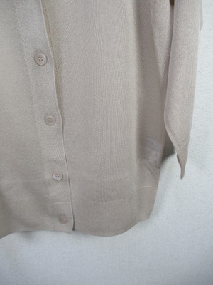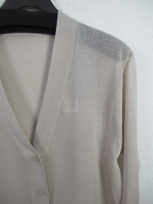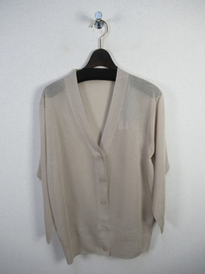 やや丈長カーディガン、前ボタン、透け感のある生地、手洗い可能