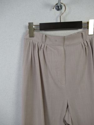 フルレングス 緩めのシエルエット裾に向かって細くなる 脇ラインがピンタックになってます 前ファスナー 後ろウエストゴム ベルト通し付き 脇ポケット 前にプリーツタック入り 白のみ裏地(クリーム色)付き 手洗い可能