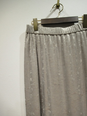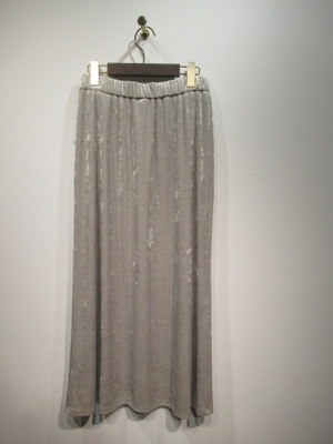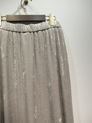 ベロア素材 ウエスト総ゴムのギャザーロングスカート やや裾に向かってAライン 裏地あり 手洗い可能