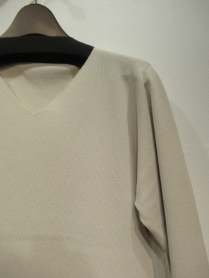 定番のシリーズ Vネックの長袖ニット 裾は前上がり 着用すると裾はややヒップに張り付かない程度の広がり とても着心地がよくさらっとした糸でカットソー代わりに着れるニット 手洗い可能