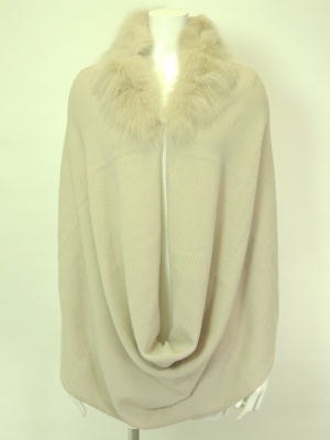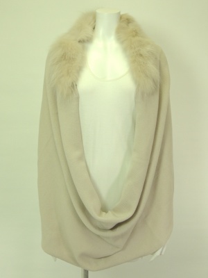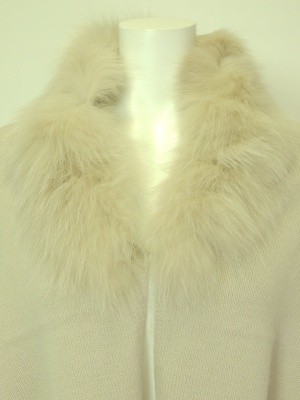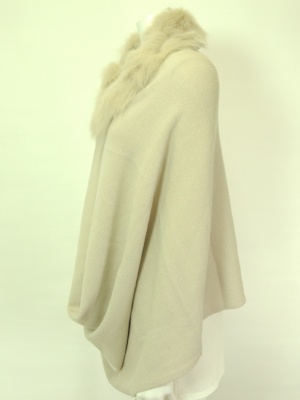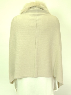 すっぽりかぶってホックを留めればケープ風、ホックを外すとポンチョ風、腕を通せばカーディガンのようです。