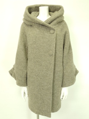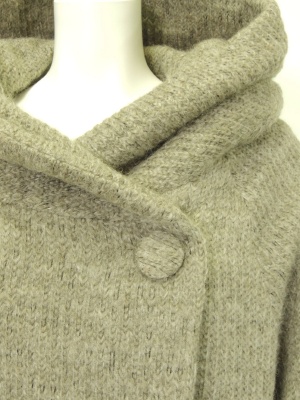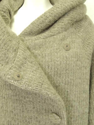立体的でボリュームのある衿が特徴的なニットコート。