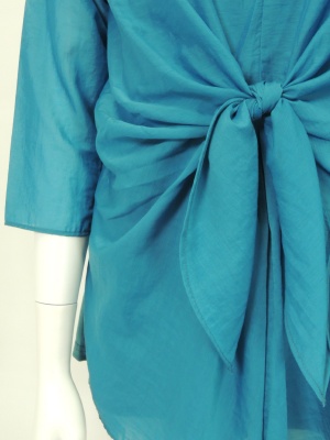 前でキュッと結ぶデザインのブラウス。