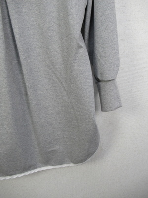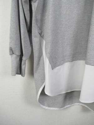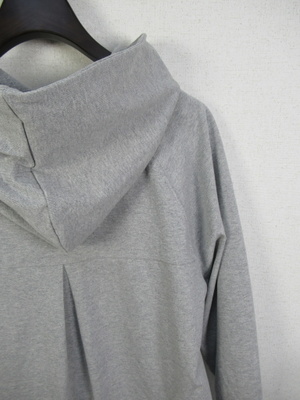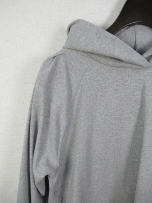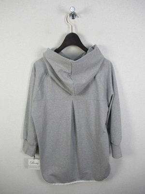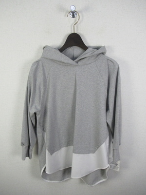 プルオーバーのフード衿 前後差有 前身ごろの裾に異素材組み合わせ 手洗い可能