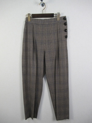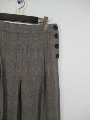 ID:114153と同じ生地、タック入りテーパードパンツ、センター入り、左横にボタンデザイン、横ファスナー、裏地なし