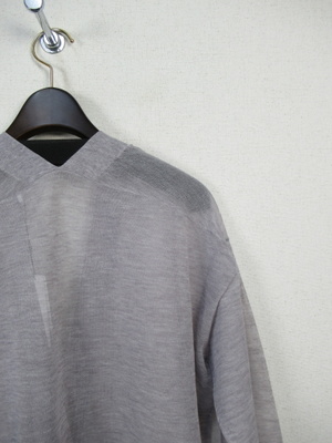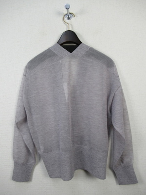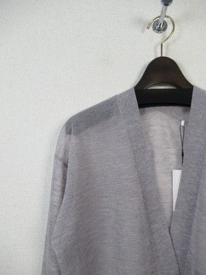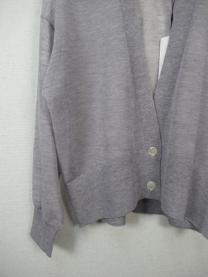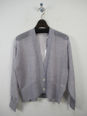 今年流行の透け感のある糸使用のカーデ Vネックで裾の方に大きなボタン2つ 袖口と裾はリブ